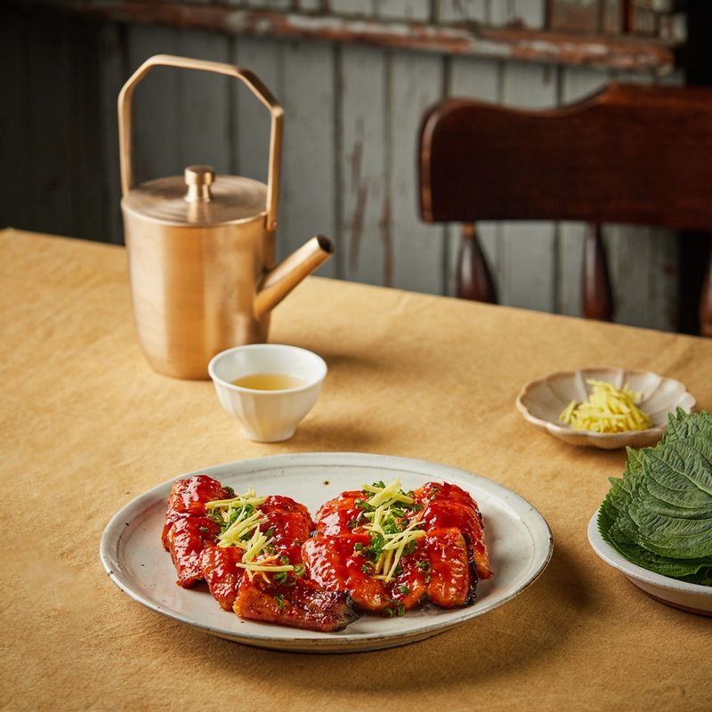 5.완성된 장어구이를 접시에 담고 채 썬 생강을 올려 맛있게 즐겨주세요.