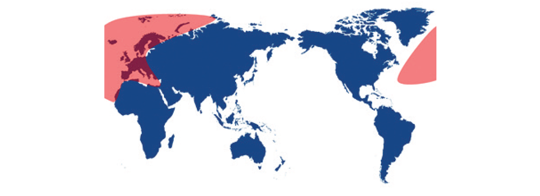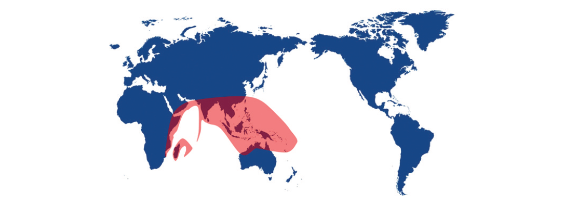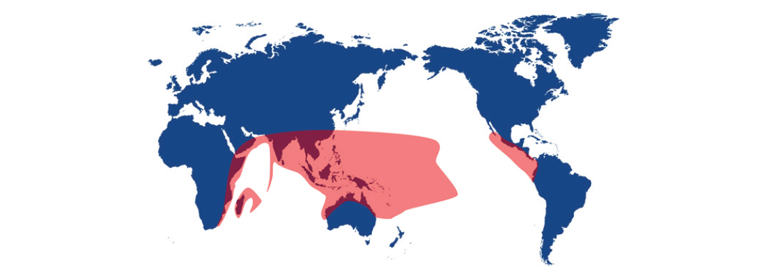 남서부 태평양지역의 호주와 뉴질랜드의 동해안, 북쪽에서 뉴칼레도니아에 걸쳐있다.
