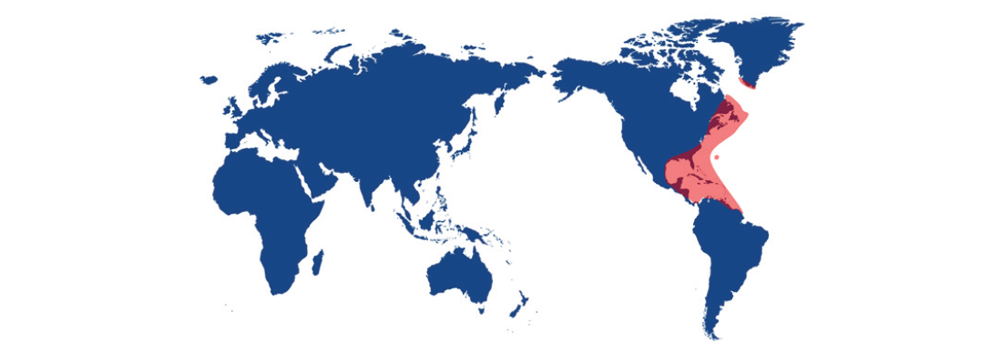 북서쪽에서 서부 대서양 중앙에 위치한 캐나다의 대서양해안을 따라가는 그린랜드 남부와 미국에서 파나마, 서인도제도에서 트리니다드에 걸친 지역에 많이 분포 한다. 형태는 작은눈은 머리를 향하여 위치하고 있고 입술은 두껍다. 자어는 등과 항문지느러미 끝의 일부는 노란색이며 꼬리지느러미는 둥글고 항문 지느러미와 연결되어 있다. 아가미는 잘 발달된 하반부의 앞부분 옆에 열려있다. 밑 턱이 위턱보다 길며 척추골은 103∼111개를 가진다.